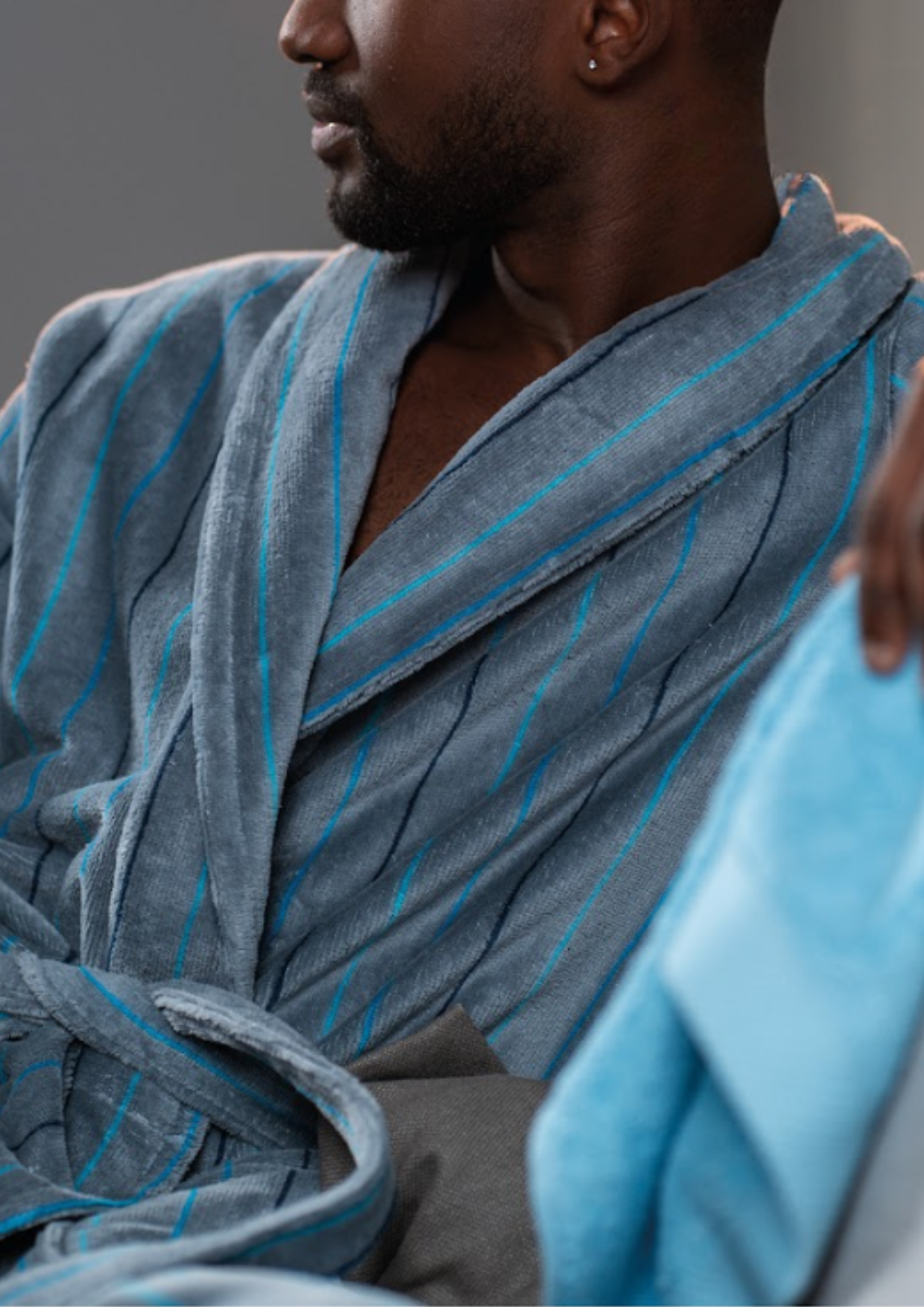 Albornoz para hombre en elegante tono gris, confeccionado con tejido de alta calidad que garantiza suavidad y confort. Presenta un bordado detallado en azul, que aporta un toque distintivo y sofisticado al diseño. Ideal para momentos de relajación en el hogar, combina funcionalidad y estilo para brindar una experiencia de uso agradable y duradera.
