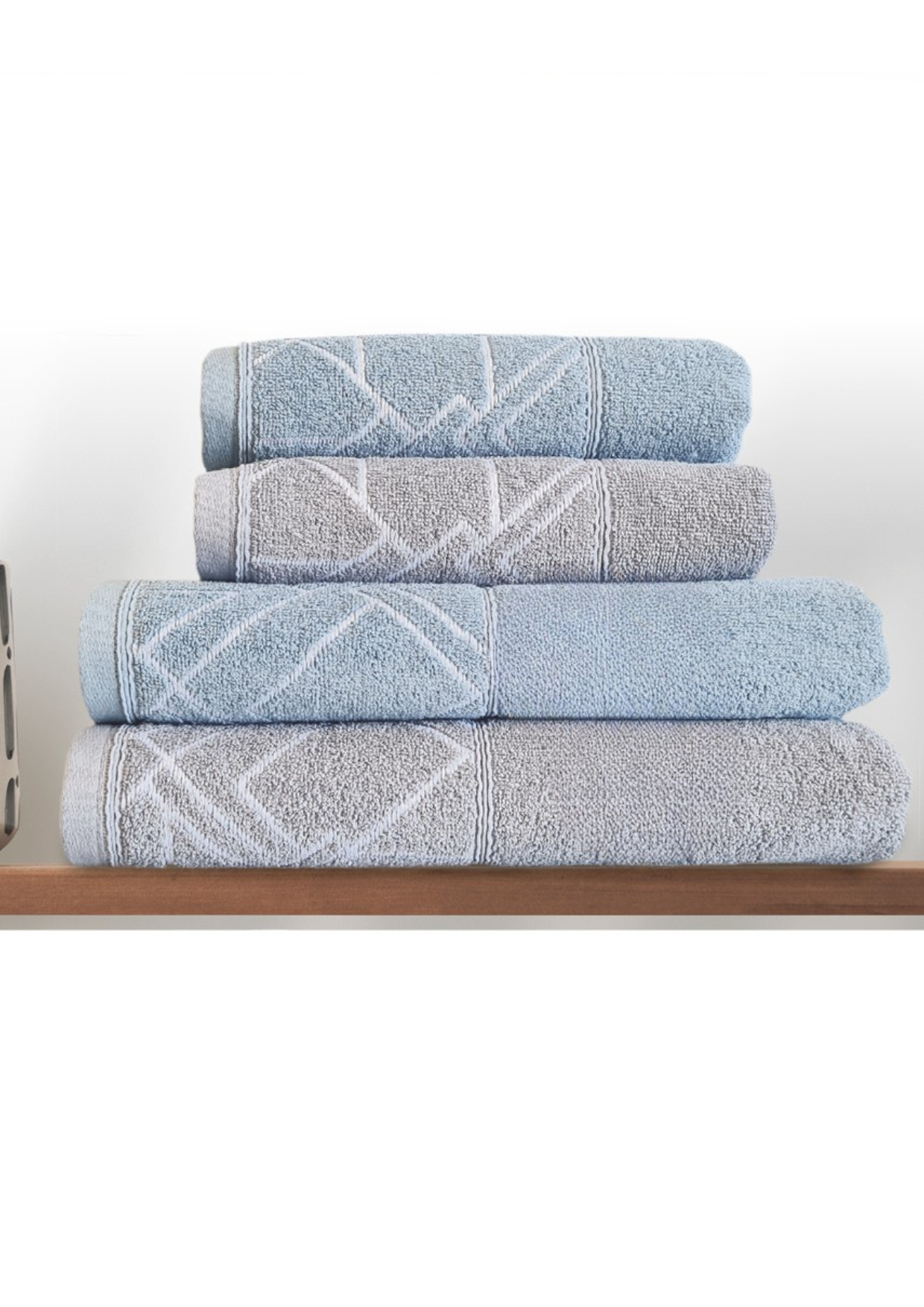 Aporta elegancia y confort a tu baño con este sofisticado juego de toallas en tonos azul y gris. Confeccionadas con algodón de alta calidad, ofrecen una textura suave, gran capacidad de absorción y un secado rápido, ideales para el uso diario.