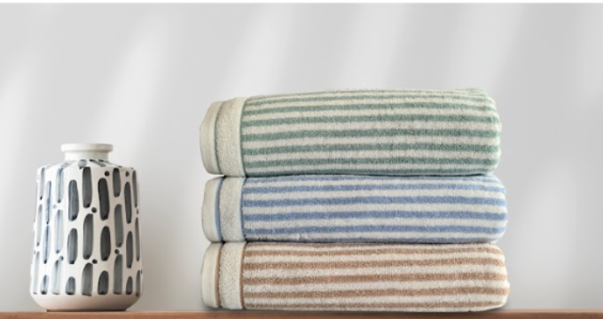 Toallas de baño en tonos azul, verde y camel, confeccionadas con materiales de alta calidad que garantizan suavidad y excelente absorción. Su diseño elegante y colores armoniosos aportan un toque sofisticado y versátil para cualquier baño.