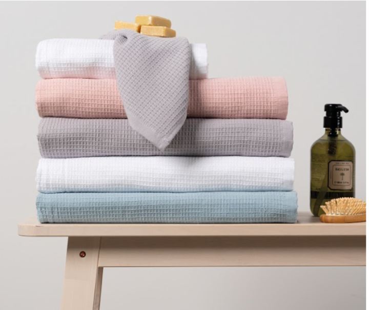 Disponibles en una armoniosa paleta de colores –azul sereno, blanco puro, gris neutro y rosa suave– estas toallas se integran fácilmente en cualquier decoración de baño, desde las más clásicas hasta las más contemporáneas. Su diseño sobrio y sofisticado las convierte en una elección ideal tanto para el uso diario como para sorprender a sus invitados.